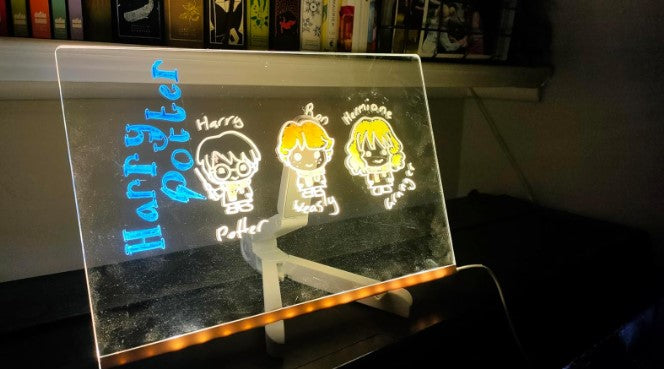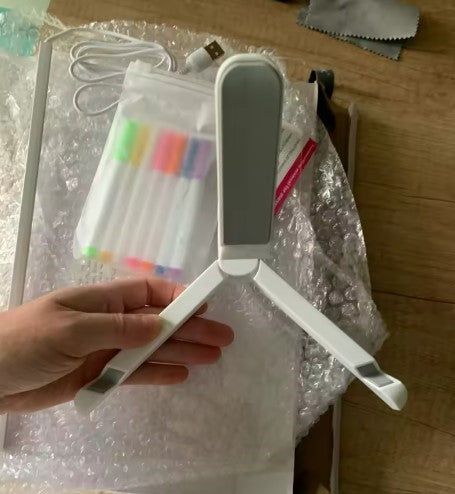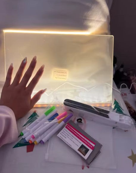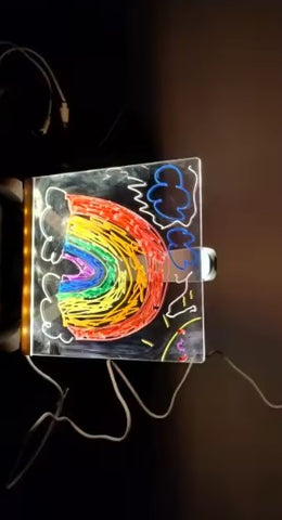 Cada detalle está pensado para que solo tengas que encender la inspiración y empezar a crear. Desde el soporte hasta los rotuladores, todo se une para que tus ideas cobren vida con luz, color y movimiento.